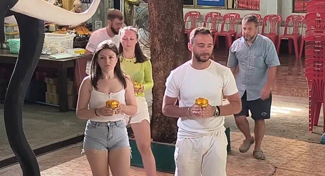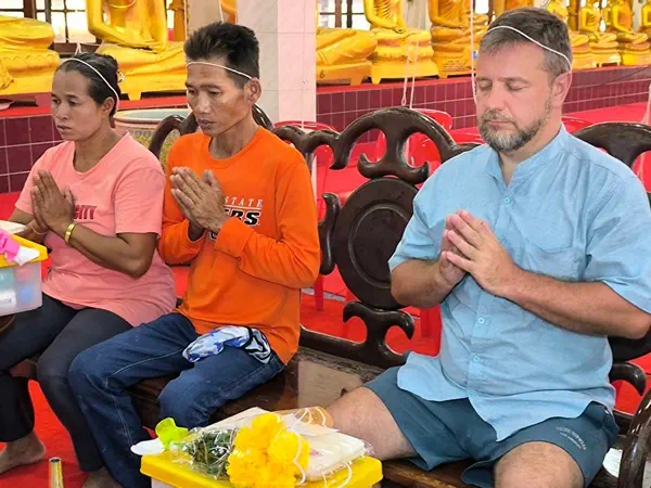 นักท่องเที่ยวชาวรัสเซียและคนไทยให้ความศรัทธาเดินทางมาวัดหลวงพ่อปากแดงเข้าพิธีนอนโลงศพสะเดาะเคราะห์ต่อดวงชะตาชีวิต ฝึกตายก่อนตายจริงฝึกสติให้คิดได้ว่าทุกคนหนีไม่พ้นความตาย พร้อมเจิมหน้าผาก เจิมฝ่ามือ ลงยันต์กระเป๋าสตางค์ ลงยันต์โทรศัพท์