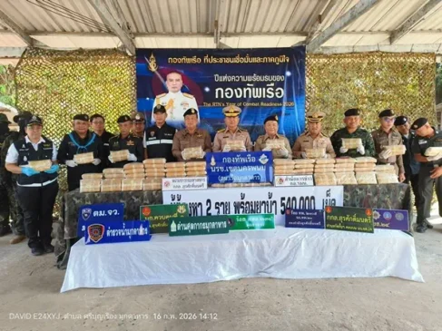 มุกดาหาร-นรข.มุกดาหาร ทลายเครือข่ายยานรกข้ามโขง! รวบ 2 หนุ่มลาวคาถนน ยึดยาบ้าล็อตใหญ่ 5.4 แสนเม็ด