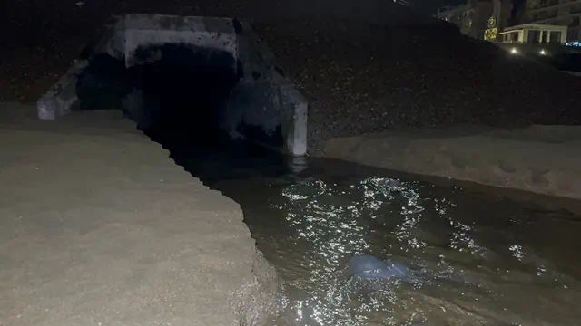 ชลบุรี-ท่อระบายน้ำเสียโผล่กลางหาดจมเทียน มีน้ำเสียไหลจำนวนมากลงสู่ทะเล ชาวบ้านสงสัย