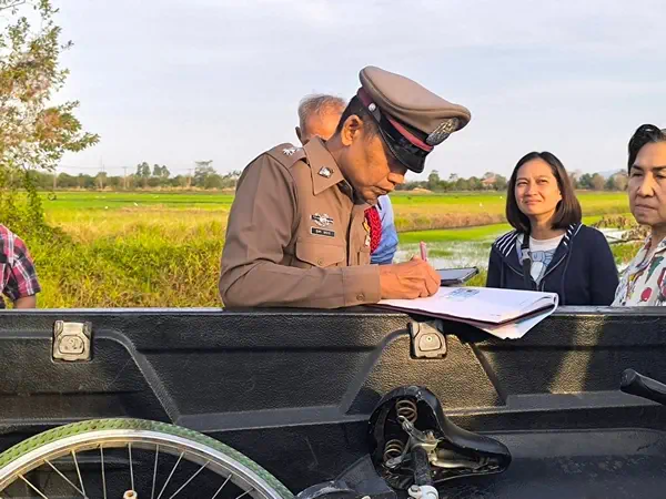 นครนายก ชาวบ้านเดินออกกำลังพบศพคนจมน้ำเสียชีวิตในบ่อข้างถนน