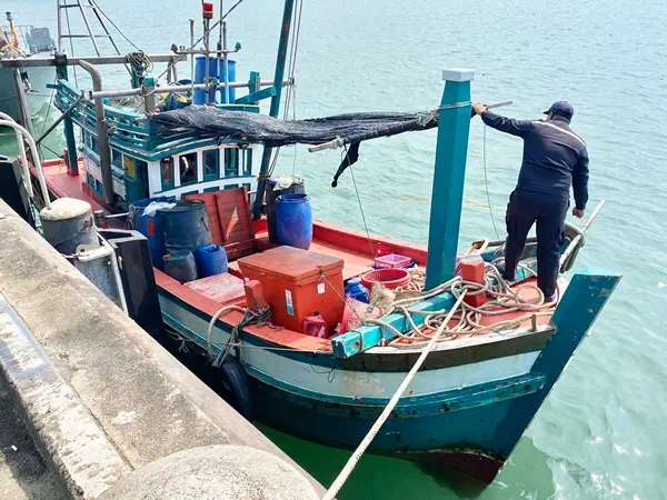 เมื่อวันที่ 22 กุมภาพันธ์ 2569 หลังรับแจ้งจาก เรือ ต.996 ร.ต.อ.ธนาคาร ศุภกานต์ธนภักดิ์ ร้อยเวร สภ.คลองใหญ่ พร้อมด้วย เจ้าหน้าที่ประมงจังหวัดตราด และ ศรชล.จังหวัดตราด เข้าตรวจสอบ ได้รับรายงานจากเรือ ต.996 ว่าตรวจพบเรืออวนลากชาวกัมพูชา ขนาดประมาณ 10 เมตร รุกล้ำเข้ามาในพิกัด 11°32.6466N 102°50.4844E ลึกกว่า 2 ไมล์ทะเล จึงแสดงตัวเข้าจับกุม ก่อนควบคุมเรือพร้อมผู้ต้องหาทั้งหมดเข้าเทียบท่าที่ท่าเรืออเนกประสงค์คลองใหญ่ เพื่อตรวจสอบตามขั้นตอนกฎหมาย จากการตรวจค้นพบปลาหมึกจำนวนหนึ่งในถังพักปลา ไม่พบสิ่งผิดกฎหมายอื่นเพิ่มเติม