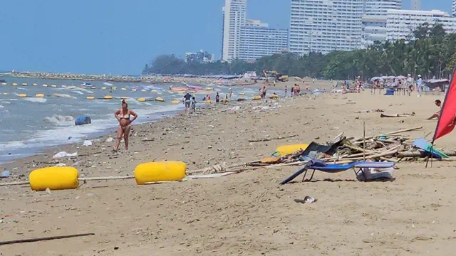 ชลบุรี-ขยะเกลื่อนชายหาดจอมเทียนหลาย กม. นักท่องเที่ยวผวา ไม่กล้าลงเล่นน้ำ เมืองพัทยาเร่งเก็บกวาดด่วน