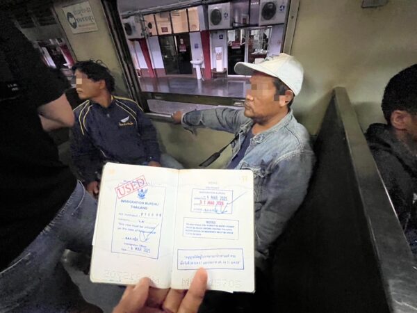 สืบเนื่องจากเมื่อวันที่ 15 ก.ย.2568 จนท.ตม.จว.สงขลา ร่วมกับ กก.สส.บก.ตม.6 ได้สืบสวนจับกุม นายคิน (นามสมมุติ) อายุ 51 ปี สัญชาติเมียนมา พร้อมกับพวกรวม 2 คน ในขณะพาชาวเมียนมา จำนวน 8 คน ซึ่งหลบหนีเข้าประเทศไทย ขึ้นรถไฟเดินทางจากสถานีรถไฟศาลายา ปลายทางสุไหงโก-ลก แต่มาถูก จนท.สตม.จับกุม ได้ที่ สถานีรถไฟชุมทางหาดใหญ่ นอกจากนี้ จนท.ยังพบว่าชาวเมียนมาทั้ง 8 คนได้แสดงหนังสือเดินทางเมียนมา เพื่อหวังให้ไม่ถูกจับกุม แต่จากการตรวจสอบแล้ว พบว่า หนังสือเดินทางเมียนมาดังกล่าวเป็นหนังสือเดินทางปลอม โดยการเปลี่ยนหน้าข้อมูลที่ระบุชื่อ ภาพถ่ายของตนเอง และประทับตราเข้าและการอนุญาตให้อยู่ในราชอาณาจักรปลอม จนท.ตม.ชุดจับกุม จึงได้จับกุมแจ้งข้อหา นายคิน (นามสมมุติ) พร้อมพวก 2 คน ในข้อหา “ร่วมกันช่วยเหลือด้วยประการใดๆ ให้คนต่างด้าวหลบหนีเข้าเมืองพ้นจากการจับกุม และ ร่วมกันทำหนังสือเดินทางปลอม” และจับกุมชาวเมียนมาทั้ง 8 คนในข้อหา “หลบหนีเข้าเมือง และใช้หนังสือเดินทางปลอม” นำตัวส่ง พนักงานสอบสวน บก.ตม.6 ดำเนินคดีตามกฎหมาย