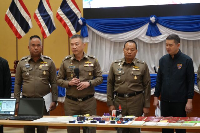 ภายใต้อำนวยการของ พล.ต.ท.ภาณุมาศ บุญญลักษม์ ผบช.สตม./ผอ.ศปชก.สตม., พล.ต.ต.พันธนะ นุชนารถ รอง ผบช.สตม./รอง ผอ.ศปชก.สตม., พล.ต.ต.ณัฐกร ประภายนต์ รอง ผบช.สตม., พล.ต.ต.เชิงรณ ริมผดี รอง ผบช.สตม., พล.ต.ต.ภานพ วรธนัชชากุล ผบก.สส.สตม./เลขานุการ ศปชก.สตม.,พล.ต.ต.ชูธเรศ ยิ่งยงดำรงสกุล ผบก.ตม.6, พล.ต.ต.ทรงโปรด สิริสุขะ ผบก.ตม.3, พ.ต.อ.รัฐโชติ โชติคุณ รอง ผบก.สส.สตม., พ.ต.อ.แดนไพร แก้วเวหล รอง ผบก.สส.สตม., พ.ต.อ.สุรศักดิ์ สุรินทร์แก้ว รอง ผบก.สส.สตม., พ.ต.อ.เฉลิมชนม์ แหลมทอง รอง ผบก.สส.สตม., พ.ต.อ.ภาณุภาคยณ์ จิตต์ประยูรตี รอง ผบก.ตม.6, พ.ต.อ.ธวัชชัย นรินรัตน์ ผกก.1 บก.สส.สตม., พ.ต.อ.ชย พานะกิจ ผกก.(สอบสวน) หน.กลุ่มงานสอบสวน บก.สส.สตม., พ.ต.อ.สรธรรศจ์ เอี่ยมละออ ผกก.ตม.จว.สงขลา ร่วมแถลงข่าวการจับกุมผู้ต้องหาคดีสำคัญ ดังนี้
