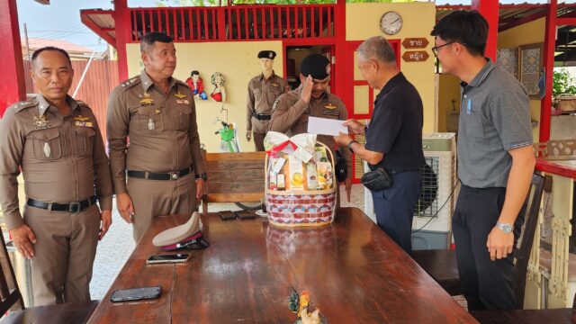 วันที่ 24 กุมภาพันธ์ 2569 ที่สถานีตำรวจภูธรเมืองสมุทรสงคราม จ.สมุทรสงคราม นายอุทัย ดำรงธรรม กรรมการผู้จัดการบริษัทแม่กลองคอนกรีต จำกัด เลขที่ 74/6 ต.บางขันแตก อ.เมือง จ.สมุทรสงคราม และอดีตประธานหอการค้าจังหวัดสมุทรสงคราม เดินทางเข้ามอบกระเช้าเพื่อขอบคุณ พ.ต.อ.สมชาย ขอค้า ผู้กำกับการ สภ.เมืองสมุทรสงคราม พร้อมเจ้าหน้าที่ตำรวจชุดสายตรวจ นำโดย ร.ต.อ.วีระยุทธ ภาธี รองสารวัตรป้องกันปราบปราม และ ส.ต.ต.กุลพัฒน์ เอี่ยมประเสริฐ ผู้บังคับหมู่ป้องกันปราบปราม ที่สามารถติดตามจับกุมคนร้ายลักขโมยโทรศัพท์มือถือภายในสำนักงานบริษัทได้ภายในคืนเดียวกันกับที่เกิดเหตุ
