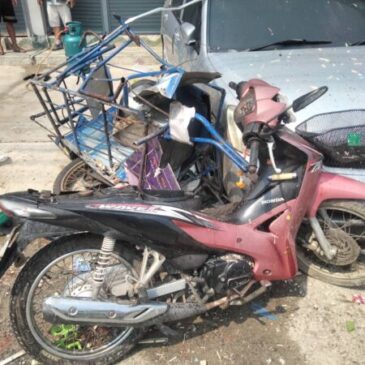 ปทุมธานี-หนุ่มใหญ่ควบเก๋งพุ่งชนรถก๋วยเตี๋ยวพ่วงข้า ดับ1 บาดเจ็บอีก 3 ราย สาวลาวยืนซื้อก๋วยเตี๋ยวถูกชนอัดก๊อปปี้เสียชีวิตคาที่