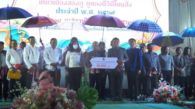 ทั้งนี้ งาน “กราบหลวงพ่อใหญ่ ไหว้ศาลหลักเมือง เที่ยวเมืองสองภู ดูของดีวิถีโนนสัง” ถือเป็นงานประเพณีที่จัดขึ้นต่อเนื่องเป็นประจำทุกปี เพื่อสืบสานวัฒนธรรมประเพณีอันดีงาม ส่งเสริมการท่องเที่ยว และประชาสัมพันธ์ของดีอำเภอโนนสัง ให้เป็นที่รู้จักอย่างแพร่หลาย สมกับคำขวัญเมืองสองภู (ภูเก้า-ภูพาน) ที่อุดมสมบูรณ์และน่าอยู่ สำหรับประชาชนและนักท่องเที่ยวที่สนใจ สามารถเดินทางมาร่วมชมงาน เลือกซื้อสินค้า และชมการแสดงดนตรีจากนักเรียนและเยาวชนได้ ณ สนามศรีโนนสัง โดยงานจะมีกิจกรรมรื่นเริงไปจนถึงเวลา 22.00 น. และจะมีการจัดแสดงและจำหน่ายสินค้าต่อเนื่องไปตลอดช่วงการจัดงานระหว่างวันที่ 24 – 28 กุมภาพันธ์ 2569 นี้