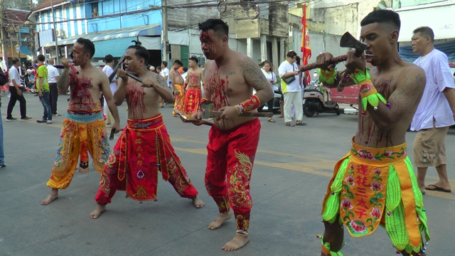 โดยได้มีการแห่เกี้ยวองค์พระจำลองเจ้าแม่กวนอิม เจ้าพ่อกวนอู แป๊ะกง และองค์พระจำลองอื่นๆ รวม 9 องค์ ขบวนม้าทรง ซึ่งปีนี้มีม้าทรง จากประเทศมาเลเซียได้มาร่วมแห่ด้วย ขบวนสิงโต มังกร และขบวนพาเหรดของนักเรียนและสมาคมต่างๆ แห่ไปตามถนนย่านธุรกิจการค้า ผ่านหอนาฬิกา ตลาดสดเทศบาลเมืองเบตง เพื่อให้พี่น้องประชาชน นักท่องเที่ยวได้กราบไหว้ บางบ้านก็จะตั้งโต๊ะบูชาไว้หน้าบ้านเพื่อคอยรับองค์พระ แล้วกราบไหว้ขอพรเพื่อความเป็นสิริมงคลแก่ตัวเองและครอบครัว ตามสองข้างทางที่ขบวนผ่านก็จะมีประชาชน นักท่องเที่ยว ยืนดู คอยถ่ายรูป บุตรหลาน ญาติ พี่น้อง ที่แต่งกายสวยงามในชุดจีนสีแดง ร่วมอยู่ในขบวนพาเหรด