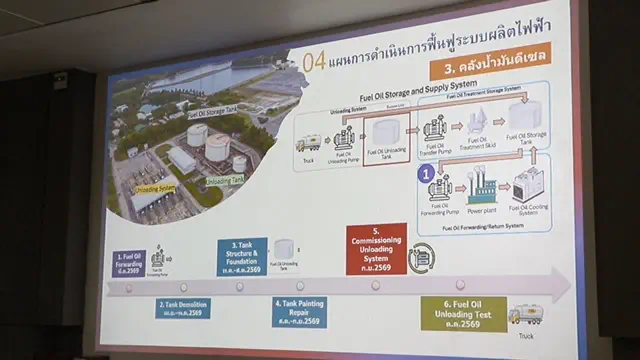 ด้านนายสุทธิพงษ์ เฉลิมเกียรติ ผู้ช่วยผู้ว่าการผลิตไฟฟ้า การไฟฟ้าฝ่ายผลิตแห่งประเทศไทย กล่าวว่า ได้เร่งดำเนินการตามแผนฟื้นฟูโรงไฟฟ้าอย่างเป็นระบบ เพื่อให้สามารถกลับมาจ่ายไฟฟ้าได้ตามปกติโดยเร็ว ปัจจุบันการซ่อมบำรุงชุดที่ 1 เครื่องที่ 1 และชุดที่ 2 เครื่องที่ 1 แล้วเสร็จ สามารถจ่ายไฟฟ้าเข้าระบบได้รวม 738 เมกะวัตต์ ขณะเดียวกันอยู่ระหว่างเร่งซ่อมบำรุงชุดที่ 1 เครื่องที่ 2 และชุดที่ 2 เครื่องที่ 2 เพื่อเพิ่มกำลังการผลิตอีก 738 เมกะวัตต์ คาดว่าจะแล้วเสร็จภายในต้นเดือนเมษายน 2569 ทำให้โรงไฟฟ้าจะนะกลับมาผลิตไฟฟ้าได้เต็มศักยภาพรวม 1,476 เมกะวัตต์