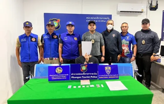ตำรวจท่องเที่ยวเกาะพะงัน รวบหนุ่มรัสเซียคาบ้านพัก ยึดค็อกเทลยาเสพติด ทั้งคีตามีน-ยาอี-MDMA รูปแบบใหม่
