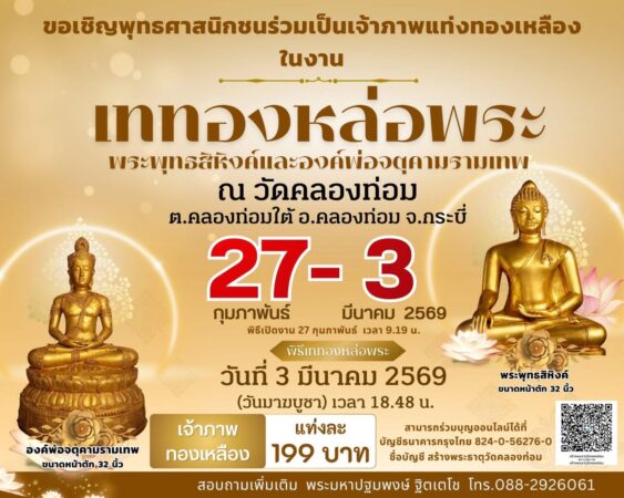 กระบี่- พิธีเปิดงานเททองหล่อพระพุทธสิหิงค์ วัดคลองท่อม -งานมหกรรมเยือนท้องถิ่น-ยลวิถี ๒๗ กพ -๓ มีค ๒๕๖๙ งานประเพณีชุมชนท่องเที่ยว otop นวัตวิถีกระบี่