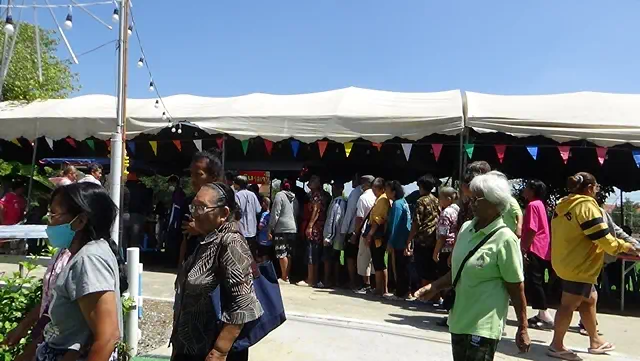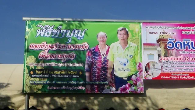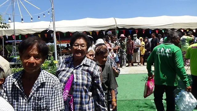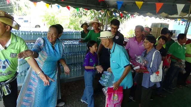 ซึ่งประชาชนและผู้ด้อยโอกาส จาก 3 ตำบลจำนวน 400 คน ที่เดินทางมารับแจกข้าวสารอาหารแห้ง นายสมชาย เทียนคำ และนางธนากร(เจ๊แม็ด)เทียนคำ 2 คู่สามีภรรยาเศรษฐีใจบุญ ได้เตรียม ก๋วยเตี๋ยว ส้มตำ ลูกชิ้นทอด น้ำดื่ม กว่า 10 ร้าน เลี้ยงฟรีประชาชนและผู้ด้อยโอกาส ด้วย