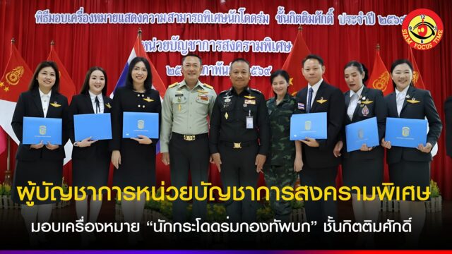 พลโท อดุลย์ จันทร์มา ผู้บัญชาการหน่วยบัญชาการสงครามพิเศษ มอบเครื่องหมาย “นักกระโดดร่มกองทัพบก” ชั้นกิตติมศักดิ์ ให้กับผู้เข้ารับการอบรม หลักสูตรพัฒนาสัมพันธ์ระดับผู้บริหาร ณ แหล่งสมาคมนายทหาร หน่วยบัญชาการสงครามพิเศษ จังหวัดลพบุรี เมื่อวันที่ 25 กุมภาพันธ์ 2569 สำหรับเครื่องหมาย“นักกระโดดร่มกองทัพบก” ชั้นกิตติมศักดิ์นี้ เป็นเกียรติยศที่มอบแก่บุคคลผู้ทำคุณประโยชน์ให้แก่ ทหารรบพิเศษ หน่วยบัญชาการสงครามพิเศษ และกองทัพบก โดยจะมีการพิจารณาผู้ที่มีความเหมาะสมในแต่ละปี เพื่อรับมอบในห้วง “วันรบพิเศษ” ซึ่งเป็นวันสำคัญของกำลังพลสายส่งทางอากาศและทหารรบพิเศษ