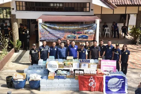 ลำปาง-อำเภอเมืองลำปาง ผนึกเอกชน มอบเสบียงหนุนกำลังพลเฝ้าระวังไฟป่าดอยพระบาท