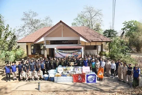 ลำปาง-อำเภอเมืองลำปาง ผนึกเอกชน มอบเสบียงหนุนกำลังพลเฝ้าระวังไฟป่าดอยพระบาท