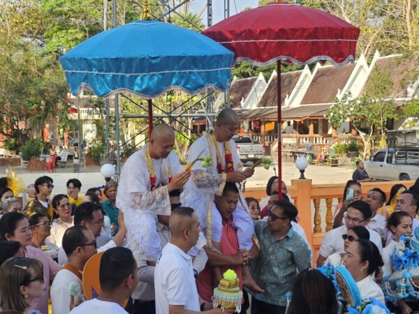 ชลบุรี-สาธุชนร่วมพิธีอุปสมบทหลานชาย ประธาน กต.ตร.สภ.เมืองพัทยา ที่วัดเขาบุญมี