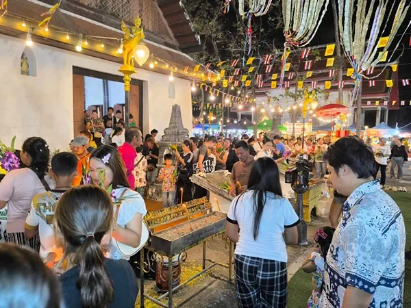 ได้มีประชาชนจำนวนมากมาร่วมทำบุญปิดทององค์หลวงพ่อสามพี่น้อง พระประธานในอุโบสถหลังเก่า(วิหารสามพี่สอง)และเมื่อถึงเวลาที่กำหนดไว้ได้จัดพิธีเดินเวียนเทียนรอบพระอุโสถหลวงพ่อสามพี่น้อง เนื่องในวันมาฆบูชา โดยมีพระครูประโชติวีณาภรณ์ เจ้าคณะตำบลนครนายก เจ้าอาวาสวัดดง พร้อมพระสงฆ์เดินนำ และต่อเป็นแถวพี่น้องประชาชนที่มาร่วมงาน เดินเวียนเทียน 3 รอบแล้วนำดอกไม้ธูปเทียนขึ้นไปกราบไหว้องค์หลวงพ่อสามพี่น้อง เป็นอันเสร็จพิธี