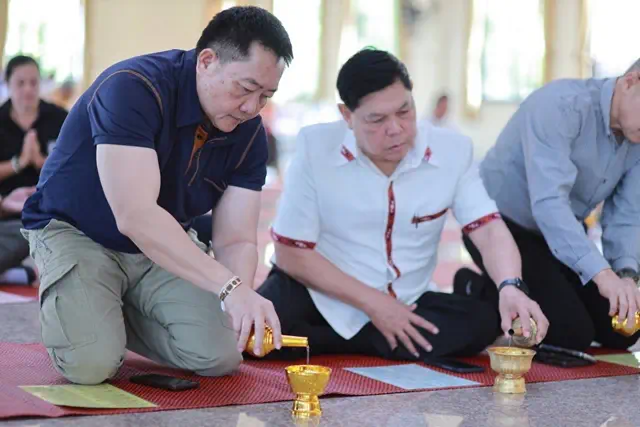 โดยมี พระธรรมวชิรนิวิฐ (บัวศรี ชุตินฺธโร) เจ้าอาวาสวัดประชานิยม พระอารามหลวง และที่ปรึกษาเจ้าคณะภาค 9 (ธ) พร้อมคณะสงฆ์ เจริญพระพุทธมนต์ให้พร ทั้งนี้มี นายสุวรรธณ์ เข็มธนเพ็ชร ผู้ว่าราชการ จ.กาฬสินธุ์ นายวิรัช พิมพะนิตย์ สส.กาฬสินธุ์ เขต 1 พล.ต.ต.มนตรี จรัลพงศ์ ปธ.กรรมการสันนิบาตสกรณ์ จ.กาฬสินธุ์ นายวิจิตร งามชื่น โยธาธิการ จ.กาฬสินธุ์ ผู้ช่วยศาสตราจารย์ นายแพทย์สุรเชษฐ์ ภูลวรรณ นายแพทย์สสจ.กาฬสินธุ์ นางนภัสสร พญาลอ วัฒนธรรม จ.กาฬสินธุ์ นายประภาส ยงคะวิสัย นายณัฐสิทธิ์ สิงห์ด้วง ผู้แทนผอ.สำนักงานพระพุทธศาสนา จ.กาฬสินธุ์ ร่วมเป็นเกียรติและร่วมทำบุญ ให้กำลังใจนักข่าวด้วย