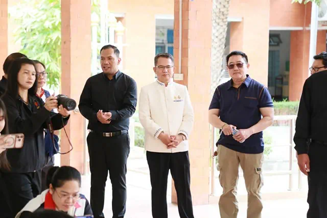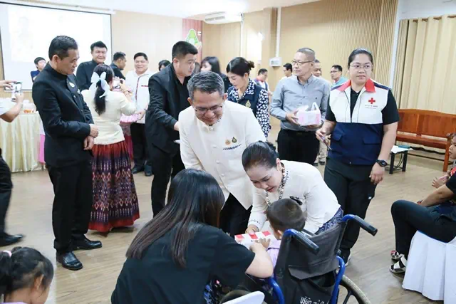จากนั้น เวลา 11.00 น.ที่ศูนย์การศึกษาพิเศษประจำ จ.กาฬสินธุ์ ถนนถีนานนท์ ต.ยางตลาด อ.ยางตลาด จ.กาฬสินธุ์ นายสุวรรธณ์ เข็มธนเพ็ชร ผู้ว่าราชการ จ.กาฬสินธุ์ พร้อมด้วยนางวรชาดา เข็มธนเพ็ชร นายกเหล่ากาชาด จ.กาฬสินธุ์ นายสันติ จัตุพันธ์ ปลัด จ.กาฬสินธุ์ พล.ต.ต.มนตรี จรัลพงศ์ ปธ.กรรมการสันนิบาตสกรณ์ จ.กาฬสินธุ์ นายเอกรัตน์ มิสา นอภ.ยางตลาด นายยุทธนา เกียรติดำเนินงาม นายกสมาคมนักข่าวกาฬสินธุ์ นายคันฉัตร เพียรวิจัยธรณี ประชาสัมพันธ์ จ.กาฬสินธุ์ นางสุจิตรา ค้าเจริญ ผอ.สถานีวิทยุกระจายแห่งประเทศไทย จ.กาฬสินธุ์ ดร.ลดา ภารประดิษฐ์ ผู้บริหาร บริษัท ลดาคอสเมติกส์ 2017 ดร.วัชรพงศ์ ชาวสามทอง นายกสมาคมส่งเสริมธุรกิจการท่องเที่ยว จ.กาฬสินธุ์ ดร.พิไรรัตน์ บริหาร กรรมการผู้จัดการ บริษัท เพชรดำฟู้ดส์ จำกัด (น้ำปลาร้าแม่บุญล้ำ)