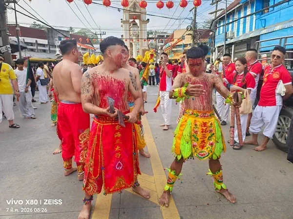 ขณะที่บรรดาเหล่าม้าทรงทั้ง ชาย หญิงกว่า 50 ชีวิต ต่างก็โชว์อภินิหาร ใช้ มีด เหล็กแหลม ทิ่มแทง ร่างกาย สร้างความหวาดเสียวให้กับประชาชน และนักท่องเที่ยวชาวมาเลเซีย ที่รอชมขบวน ต่างนำโทรศัพท์มือถือ ถ่ายรูปเก็บไว้เป็นที่ระลึก ตามเส้นทาง แยกต่างๆ มีเจ้าหน้าที่ตำรวจ สภ.เบตง ตชด.445 ทหาร ฝ่ายปกครอง และกองกำลังภาคประชาชน คอยอำนวยความสะดวกด้านการจราจร และคอยดูแลรักษาความสงบเรียบร้อยความปลอดภัยให้กับพี่น้องประชาชนและนักท่องเที่ยว