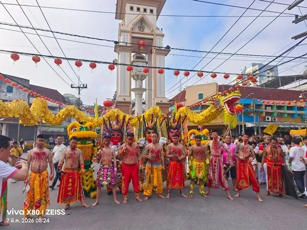 วันที่ 7 มี.ค.69 ที่วัดโพธิสัตโตเจ้าแม่กวนอิมเบตง หรือ วัดกวนอิม ต.เบตง อ.เบตง จ.ยะลา นายนิรันดร์ สุนทรศิริ ปลัดอาวุโสอำเภอเบตง นายสกุล เล็งลัคน์กุล ประธานชมรมอนุรักษ์วัฒนธรรมท้องถิ่นจีน หัวหน้าส่วนราชการ ประธาน ตัวแทนสมาคมต่างๆ ได้ร่วมกันปล่อยขบวนองค์พระ สิงโต มังกรแห่ไปรอบเมืองเบตง ในงานสมโภชวัดโพธิสัตโตเจ้าแม่กวนอิมเบตงประจำปี2569 ให้พี่น้องชาวไทยเชื้อสายจีน นักท่องเที่ยว ได้กราบไหว้บูชา เพื่อความเป็นสิริมงคลแก่ตนเองและครอบครัว ทำให้ทั้งเมืองเบตงคึกคักเป็นอย่างมาก เต็มไปด้วยผู้คน ตามสองข้างทางที่ขบวนแห่พระผ่าน ก็เต็มไปด้วยพี่น้องประชาชนและนักท่องเที่ยว