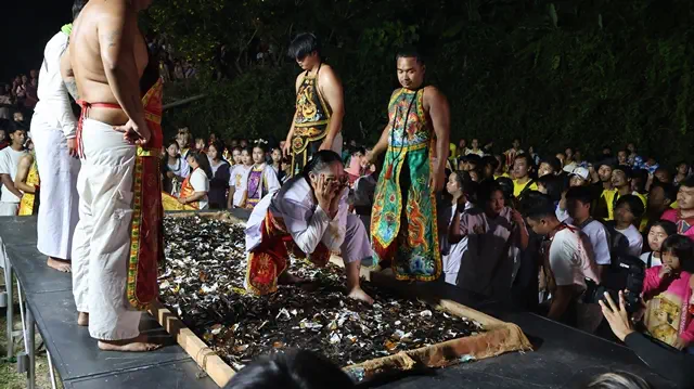 เบตง ประชาชน นักท่องเที่ยวชาวมาเลเซีย จำนวนมาก ชมพิธีลุยกระเบื้อง ลุยไฟ งานสมโภชวัดโพธิสัตโตเจ้าแม่กวนอิมเบตงประจำปี2569