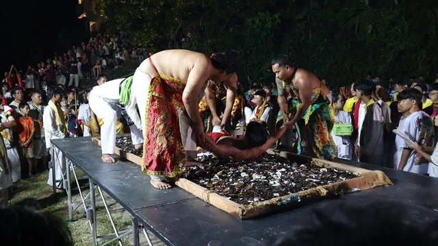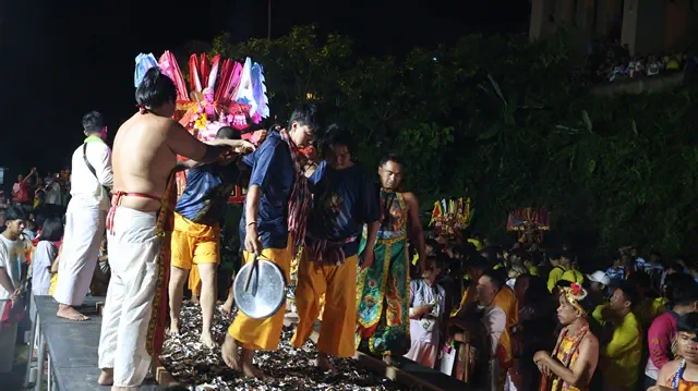 วันที่ 7 มี.ค.69 ที่บริเวณลานด้านบนข้างอุโมงค์เบตงมงคลฤทธิ์ อ.เบตง จ.ยะลา มีประชาชนและนักท่องเที่ยวชาวมาเลเซียจำนวนหลายร้อยคนมารอคอยเฝ้าชม ดูบรรดาเหล่าม้าทรง ทั้งชาย หญิง กว่า 20 คน และผู้หามเกี้ยวองค์พระต่างๆ ประกอบพิธีเดิน ลุยกระเบื้อง ลุยไฟ ในงานสมโภชวัดโพธิสัตโตเจ้าแม่กวนอิมเบตง หรือ วัดกวนอิม ประจำปี2569 หลังจากที่ช่วงเช้าได้แห่รอบเมืองเบตง ท่ามกลางการรักษาความปลอดภัยและอำนวยความสะดวกในด้านการจราจร ของเจ้าหน้าที่ตำรวจ สภ.เบตง ตชด. อส. และกองกำลังภาคประชาชน