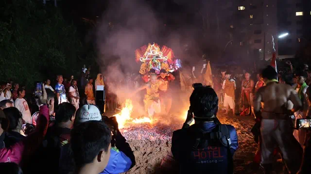 เบตง ประชาชน นักท่องเที่ยวชาวมาเลเซีย จำนวนมาก ชมพิธีลุยกระเบื้อง ลุยไฟ งานสมโภชวัดโพธิสัตโตเจ้าแม่กวนอิมเบตงประจำปี2569