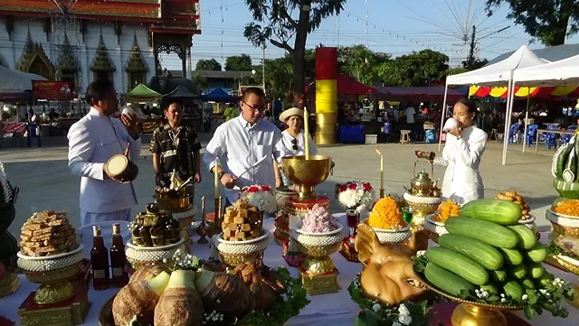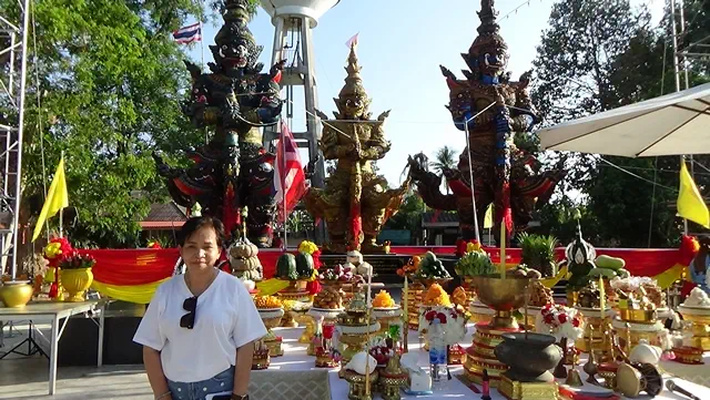 อ่างทอง-วัดสามประชุมร่วมกับ อบต.บางระกำ บวงสรวงท้าวเวสสุวรรณ 3 ตนชาวบ้านแห่ส่องเลขหางประทัด