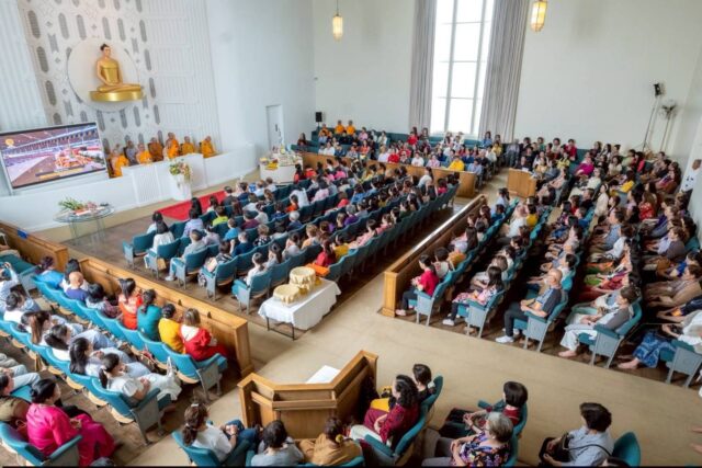 พุทธศาสนิกชนหลายเชื้อชาติร่วมนั่งสมาธิในพิธีบูชาข้าวพระ ณ วัดพระธรรมกายเมลเบิร์น