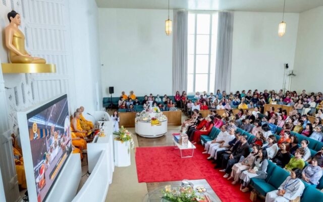 พุทธศาสนิกชนหลายเชื้อชาติร่วมนั่งสมาธิในพิธีบูชาข้าวพระ ณ วัดพระธรรมกายเมลเบิร์น