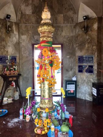 ต่อมาพระสงฆ์ทรงสมณศักดิ์จำนวน 10 รูป เจริญพระพุทธมนต์ ก่อนที่ประธานในพิธีและแขกผู้มีเกียรติจะถวายจตุปัจจัยไทยธรรม ภัตตาหารเช้าแบบปิ่นโต และร่วมพิธีกรวดน้ำรับพร จากนั้นในเวลา 09.39 น. จะมีพิธีพราหมณ์หรือพิธีบวงสรวงหลักเมือง เพื่อถวายเครื่องสังเวยและความเคารพต่อองค์พระหลักเมือง ก่อนจะมีการแสดงรำถวายองค์หลักเมืองสมุทรสงคราม
