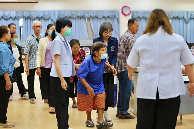 ได้แก่ รพ.สต.ท่าโพธิ์, รพ.สต.ท่าทอง, รพ.สต.วัดพริก, รพ.สต.บ้านเสาหิน, รพ.สต.วังน้ำคู้ และ รพ.สต. งิ้วงาม เพื่อค้นหา คัดกรอง และจัดบริการกายอุปกรณ์ที่ผลิตขึ้นเฉพาะราย ให้เหมาะสมกับสรีระและพยาธสภาพ ของผู้ป่วยแต่ละท่าน ซึ่งได้ดำเนินการอบรมให้ความรู้ เรื่องการดูแลสุขภาพเท้า แก่แกนนำ อสม. และกลุ่มเป้าหมาย พร้อมกับผลิตและช่อมแชมอุปกรณ์เสร็จสิ้นเรียบร้อยแล้ว ประกอบด้วย รองเท้า และอุปกรณ์พยุงส้นเท้าเฉพาะราย จำนวนกว่า 60 ราย, อุปกรณ์พลาสติกเสริมดามข้อเท้า จำนวน 3 ราย และอุปกรณ์ดามข้อมือมือ จำนวน 2 ราย , งานซ่อมอุปกรณ์รถเข็นคนพิการ 2 ราย และงานซ่อมแซมกายอุปกรณ์ 3 ราย