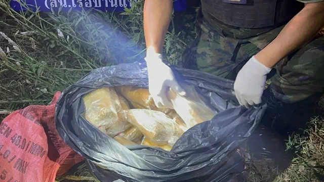 กระทั่งเวลาประมาณ 20.00 น. พบชายต้องสงสัย 1 คน แบกวัตถุต้องสงสัยขึ้นมาจากริมแม่น้ำโขง เมื่อเจ้าหน้าที่แสดงตัวเข้าตรวจสอบ ชายดังกล่าวเกิดอาการตกใจ รีบทิ้งกระสอบและอาศัยความมืดหลบหนีไปอย่างรวดเร็ว เจ้าหน้าที่จึงเข้าตรวจสอบกระสอบที่ถูกทิ้งไว้บริเวณข้างถนนริมฝั่งแม่น้ำโขง