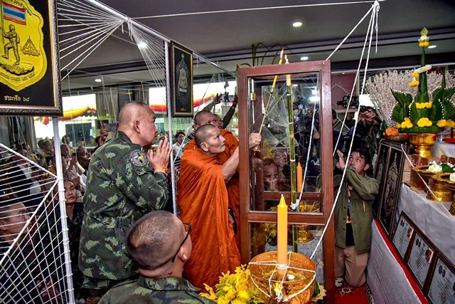 •พระราชวิริปัญญาภรณ์ พระอาจารย์สุริยันต์ โฆสปัญโญทั้งนี้ การจัดพิธีพุทธาภิเษกเหรียญรุ่น “ชนะศึก 68” กองกำลังสุรนารี จัดขึ้นเพื่อความเป็นสิริมงคล สร้างขวัญกำลังใจแก่กำลังพล ตลอดจนพุทธศาสนิกชน และผู้มีจิตศรัทธา พร้อมทั้งเป็นที่ระลึกในโอกาสสำคัญของหน่วยงานต่อไป หลังจากนั้น กองกำลังสุรนารี ได้มีการทำพิธีมอบใบประกาศเกียรติคุณกับผู้ร่วมพิธี โดยมีบุคลากรทั้งในส่วนของข้าราชการ และภาคเอกชน ที่ได้มีการร่วมสนับสนุนและให้การอุปถัมภ์ กำลังทหารในห้วงเวลาที่เกิดเหตุปะทะ ทั้งนี้ กัน จอมพลัง และ “กังฟู” ร่วมรับมอบใบประกาศเกียรติคุณ ในครั้งนี้ด้วย