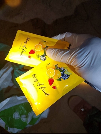 จากการเข้าตรวจสอบบริเวณ หาดมโนภิรมย์ บ้านชะโนด ตำบลชะโนด อำเภอหว้านใหญ่ จังหวัดมุกดาหาร เจ้าหน้าที่พบวัตถุต้องสงสัยถูกทิ้งไว้ในพงหญ้าและริมตลิ่ง เมื่อทำการตรวจสอบอย่างละเอียดพบเป็นยาเสพติดจำนวนมาก ประกอบด้วย ยาบ้าบรรจุในกระสอบจำนวน 3 ใบ รวมประมาณ 600,000 เม็ด Happy Water (ยาเคลิ้ม) ยาเสพติดชนิดผงบรรจุในซองฟอยล์สีเหลืองสดใช้ชื่อแพ็กเกจ “King of Fruit” จำนวน 2 ถุงใหญ่ ประมาณ 100 ซอง