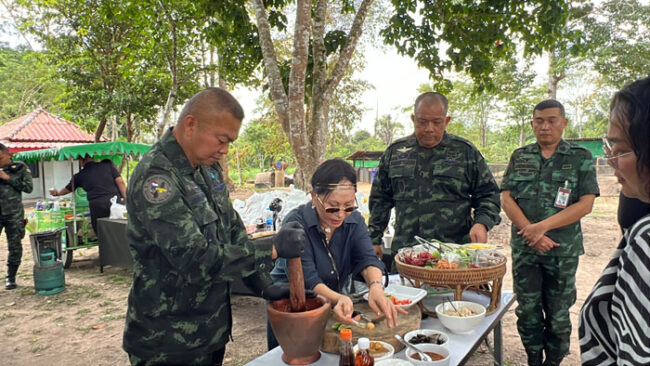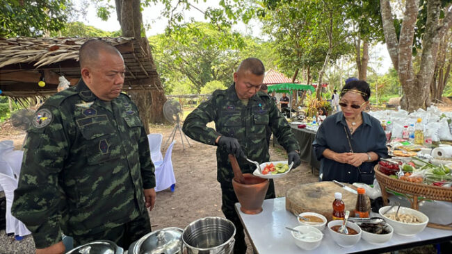 ภาพแม่ทัพยืนตำส้มตำท่ามกลางเสียงหัวเราะของทหารในค่าย สะท้อนความเป็นผู้นำที่ใกล้ชิดลูกน้อง สร้างขวัญกำลังใจให้กับกำลังพลที่ปฏิบัติหน้าที่อย่างหนัก