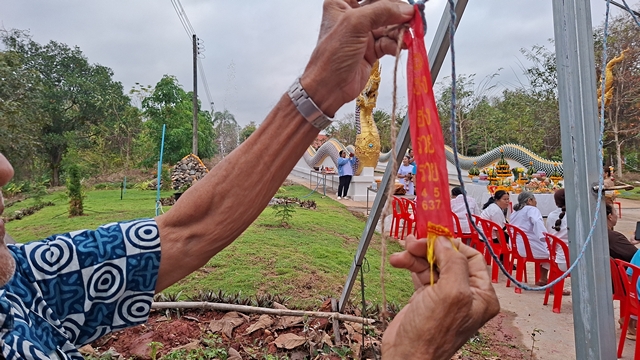 นางน้ำฝน เปิดเผยว่า การทำพิธีครั้งนี้เป็นการบวงสรวงพญานาคราชทั้ง 2 องค์ หลังการก่อสร้างแล้วเสร็จสมบูรณ์ เพื่อบอกกล่าวสิ่งศักดิ์สิทธิ์ทั้งหลายให้รับรู้ และขอให้สถานที่แห่งนี้เป็นศูนย์รวมจิตใจของชาวบ้านในการสืบทอดพระพุทธศาสนา โดยพิธีได้จัดตามที่องค์พญานาคต้องการ ได้แก่ ธัญพืช 9 อย่าง ขนมต้ม ขนมเทียน และจุดธูปเปิดภูมิ 52 ดอก