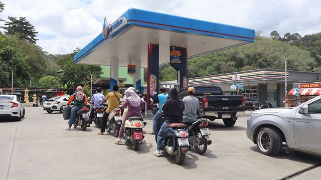 วันที่ 15 มี.ค.69 ที่สถานีบริการน้ำมัน ปตท.เบตง ซึ่งตั้งอยู่ทางเข้าออกเมืองเบตง อ.เบตง จ. ยะลา ยังคงมีประชาชนจำนวนมากต่อแถวเข้าคิวเพื่อรอเติมน้ำมันเชื้อเพลิงอย่างต่อเนื่อง แม้ผู้ที่มาต่อแถวรอเติมน้ำมันไม่มากเหมือนเมื่อวานนี้ที่ท้ายแถวล้นออกนอกถนนยาวหลายร้อยเมตร ประชาชนส่วนใหญ่นอกจากที่จะเติมใส่รถแล้วก็ยังนำแกลอน ซึ่งมีทั้งขนาด 5 ลิตร 20 ลิตร 30 ลิตร มาเติมสำรองไว้ โดยเฉพาะพี่น้องเกษตรกร ที่ต้องนำน้ำมันไปใช้กับเครื่องมือทางการเกษตร อย่างเครื่องสูบน้ำ ในการสูบน้ำรดน้ำผลไม้ จะนำแกลอนมาเติมน้ำมัน เต็มตามปริมาณ ที่ทางปั๊มกำหนด คือ 700 บาท