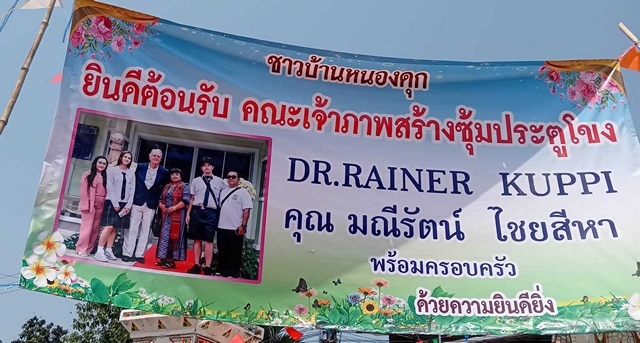 ครอบครัวคุ๊ปปี้ “ฝรั่งหัวใจพุทธ” นำโดยคุณแม่มณีรัตน์ ไชยสีหา และ ดร.ไรเนอร์ คุ๊ปปี้ สามีชาวเยอรมัน พร้อมครอบครัว ชาวบ้านคำมะโฮ ต.คำเหมือดแก้ว อ.ห้วยเม็ก จ.กาฬสินธุ์ เดินสายทำบุญทั้งในพื้นที่และนอกพื้นที่ตลอดปี ล่าสุดเป็นเจ้าภาพสร้างซุ้มประตูโขงถวายวัด เพื่อเป็นอนุสรณ์และถาวรวัตถุทรงคุณค่า ให้อนุชนรุ่นหลังร่วมภาคภูมิใจ ในการมีส่วนร่วมส่งเสริมและต่อยอดพระพุทธศาสนา