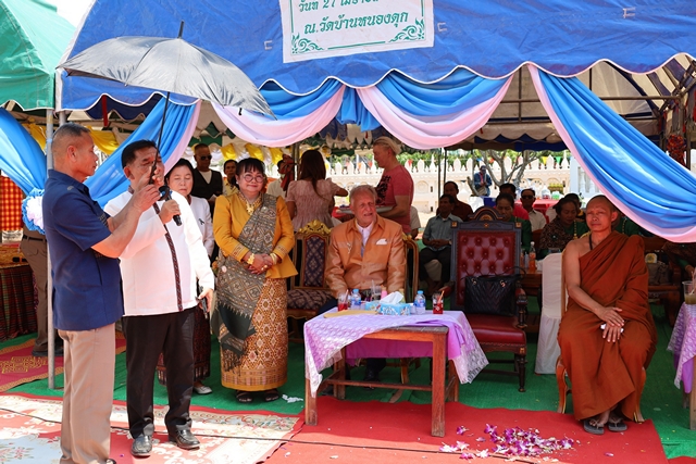 ที่วัดบ้านหนองดุก ต.มิตรภาพ อ.แกดำ จ.มหาสารคาม คุณแม่มณีรัตน์ ไชยสีหา และ ดร.ไรเนอร์ คุ๊ปปี้ สามีชาวเยอรมัน พร้อมครอบครัว ชาวบ้านคำมะโฮ ต.คำเหมือดแก้ว อ.ห้วยเม็ก จ.กาฬสินธุ์ เป็นเจ้าภาพสร้างซุ้มประตูโขงถวายวัด โดยมีนายยุทธนา คงสมมาตย์ นายอำเภอห้วยเม็ก พ.ต.ท.นาวิน อุ่นใจชน รอง ผกก.สส.สภ.ห้วยเม็ก และส่วนราชการ เดินทางไปร่วมงานและร่วมทำบุญด้วย