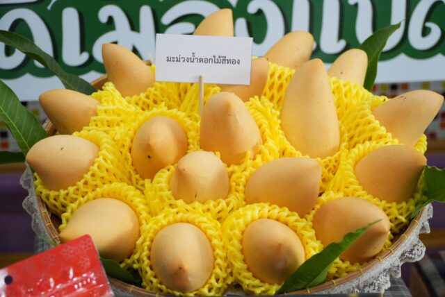 จังหวัดฉะเชิงเทรา ได้ยก “มะม่วง GI แปดริ้ว” เป็นสินค้าเด่นของงาน ประกอบด้วย มะม่วงน้ำดอกไม้สีทองบางคล้า มะม่วงเขียวเสวยแปดริ้ว มะม่วงขายตึกแปดริ้ว และมะม่วงแรดแปดริ้ว ซึ่งได้รับการขึ้นทะเบียนสิ่งบ่งชี้ทางภูมิศาสตร์ (GI) สะท้อนอัตลักษณ์เฉพาะถิ่น ด้วยสภาพพื้นที่ลุ่มแม่น้ำบางปะกงที่มีลักษณะ “3 น้ำ” ได้แก่ น้ำจืด น้ำเค็ม และ