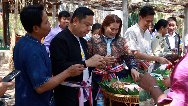 ที่ป่าชุมชนดอนเจ้าปู่บ้านกุดดุก หมู่ที่ 3 ต.ทรายมูล อ.น้ำพอง จ.ขอนแก่น กลุ่มสตรีบ้านกุดดุกร่วมกันฟ้อนรำเพื่อเป็นบวงสรวงบูชาศาลปู่ตาและเจ้าย่า สิ่งศักดิ์ประจำป่าชุมชนที่ชาวบ้านเคารพศรัทธาและยังเป็นศูนย์รวมจิตใจของชาวบ้าน หลังจากที่ป่าชุมชนแห่งนี้ ได้รับคัดเลือกให้เป็นป่าชุมชนอย่างยั่งยืน จังหวัดขอนแก่น ตามโครงการเพื่อการส่งเสริมการจัดการป่าชุมชนอย่างยั่งยืน จังหวัดขอนแก่น ประจำปี 2569 ของสำนักจัดการทรัพยากรป่าไม้ที่ 7 (ขอนแก่น) โดยมีนายกรชวาลวิชญ์ (อ่านว่า กอน-ชะ-วาน-วิด) ชัยพีรวัส นายอำเภอน้ำพอง จ.ขอนแก่น พร้อมด้วย น.ส.ศิริพร ธิมาไชย ผู้อำนวยการส่วนจัดการป่าชุมชน สำนักจัดการทรัพยากรป่าไม้ที่ 7 (ขอนแก่น) นายณรงค์ สีพุทธา ประธานที่ปรึกษาป่าชุมชนบ้านกุดดุก หน่วยงานที่เกี่ยวข้อง และชาวบ้านกุดดุกเข้าร่วม ก่อนจะร่วมกันทำพิธีเปิดผ้าแพรคุมป้ายโครงการฯ อย่างเป็นทางการ ก่อนจะร่วมกันทำกิจกรรมปลูกต้นไม้ “ไม้ยืนต้นผลกินได้” ที่บริเวณด้านหน้าป่าชุมชน