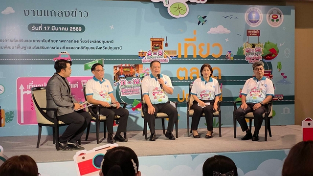 เมื่อวันที่ 17 มีนาคม 2569 จังหวัดปทุมธานี โดยสำนักงานการท่องเที่ยวและกีฬาจังหวัดปทุมธานี จัดงานแถลงข่าวเปิดตัว “โครงการส่งเสริมและยกระดับศักยภาพการท่องเที่ยวจังหวัดปทุมธานี” ภายใต้กิจกรรมพัฒนาฟื้นฟูและส่งเสริมการท่องเที่ยวตลาดวิถีชุมชน ณ โรงแรมทินิดี บางกอก กอล์ฟ คลับ เพื่อดึงดูดนักท่องเที่ยวและกระจายรายได้สู่ชุมชนอย่างยั่งยืน โดยมีนายเอกวิทย์ มีเพียร ผู้ว่าราชการจังหวัดปทุมธานี เป็นประธานในพิธีแถลงข่าว พร้อมด้วยผู้บริหารจากหน่วยงานที่เกี่ยวข้อง ร่วมกันเปิดตัวกิจกรรมที่จะจัดขึ้นในตลาดเก่าชื่อดัง 4 แห่งของจังหวัด เพื่อโชว์อัตลักษณ์วิถีชีวิตริมน้ำ อาหารอร่อย และของดีประจำท้องถิ่น