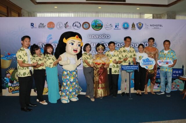 วันที่ 16 มีนาคม 2569 ณ ห้องจันสุดา โรงแรมสตาร์ คอนเวนชั่น จ.ระยอง นายไตรภพ วงศ์ไตรรัตน์ ผู้ว่าราชการจังหวัดระยอง พร้อมด้วย นายประสานต์ พนฤกษาชาติ รองนายกองค์การบริหารสวนจังหวัดระยอง, นางพิศมัย ศุภนันตฤกษ์ นายกสมาคมโรงแรมจังหวัดระยอง, นายวรวุฒิ ค่านสมพงศ์ วัฒนธรรมจังหวัดระยอง, นายทินกร ลาวัณย์เสถียร ประธานหอการค้าจังหวัดระยอง และนายชาญวิทย์ จารุสมบัติ กรรมการและรองผู้จัดการใหญ่ด้านสื่อสารและภาพลักษณ์องค์กร บริษัท ดั๊บเบิ้ล เอ (1991) จำกัด (มหาชน) ร่วมแถลงข่าวเตรียมจัดงาน “สงกรานต์ถนนทุเรียน จังหวัดระยอง 2026 ครั้งที่ 2 ท่ามกลางแขกผู้มีเกียรติ ผู้แทนภาครัฐ-เอกชน เข้าร่วม