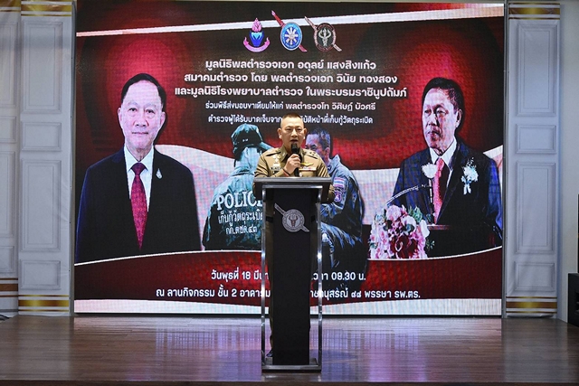 ผบ.ตร.กล่าวว่า ในนามของสำนักงานตำรวจแห่งชาติ และในฐานะประธานมูลนิธิโรงพยาบาลตำรวจ ในพระบรมราชินูปถัมภ์ ขอทำหน้าที่เป็นตัวแทนข้าราชการตำรวจทั่วประเทศ ขอบพระคุณในความเมตตาของ พล.ต.อ.อดุลย์ แสงสิงแก้ว และ พล.ต.อ.วินัย ทองสอง ที่ร่วมมอบโอกาสและความหวังใหม่ให้แก่ข้าราชการตำรวจผู้กล้าหาญ พร้อมกันนี้ในฐานะผู้บังคับบัญชา ขอแสดงความเคารพอย่างสูงจากใจจริงไปยัง พล.ต.ท.วิศิษฏ์ บัวศรี และครอบครัว ตลอดจนครอบครัวของข้าราชการตำรวจทุกนาย ซึ่งเป็นกำลังสำคัญที่อยู่เบื้องหลังการเสียสละเพื่อปฏิบัติหน้าที่รับใช้ประเทศชาติ