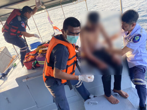 เมื่อถึงจุดเกิดเหตุ เจ้าหน้าที่พบผู้บาดเจ็บเป็นชายสัญชาติเมียนมา นอนจมกองเลือดภายในเรือ มีบาดแผลถูกแทงถึง 9 แผล กระจายตามร่างกาย ทั้งหน้าท้อง หลัง แขน และหน้าอก อาการสาหัส เจ้าหน้าที่จึงเร่งลำเลียงขึ้นเรือตรวจการณ์ 532 เพื่อปฐมพยาบาลอย่างเร่งด่วน ก่อนนำส่งฝั่งให้แพทย์รักษาต่อ