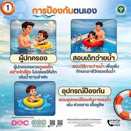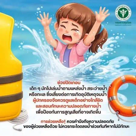 สำนักงานป้องกันควบุคมโรคที่ 7 จังหวัดขอนแก่น (สคร.7) เตือนประชาชน ในช่วงปิดเทอมภาคฤดูร้อน ระหว่างเดือนมีนาคม–พฤษภาคมของทุกปี เป็นช่วงที่มีเด็กจมน้ำเสียชีวิตสูงที่สุด โดยเฉพาะเดือนมีนาคมที่มีสถิติสูงสุดของปี รองลงมาคือเดือนตุลาคม ซึ่งเป็นช่วงปิดภาคเรียนเช่นกัน เผยข้อมูลด้านสาธารณสุขพบ “การจมน้ำ” เป็นสาเหตุการเสียชีวิตอันดับ 1 ของเด็กไทยอายุต่ำกว่า 15 ปี เมื่อเทียบกับทุกสาเหตุ ถึงแม้แนวโน้มการเสียชีวิตจะลดลง แต่ยังคงเป็นปัญหาสำคัญที่ต้องเฝ้าระวังอย่างต่อเนื่อง