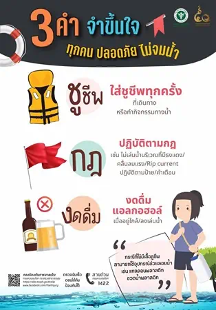 “รวมทั้ง ควรส่งเสริมให้เด็กและประชาชนเรียนรู้การว่ายน้ำเพื่อเอาชีวิตรอด ทักษะการช่วยฟื้นคืนชีพ (CPR) รวมทั้งวิธีช่วยเหลือผู้ประสบเหตุอย่างถูกต้องด้วยหลัก “ตะโกน โยน ยื่น” คือ ตะโกนเรียกคนช่วย โยนอุปกรณ์ให้เกาะ และยื่นอุปกรณ์ให้จับ โดยไม่กระโดดลงไปช่วยเอง เพื่อลดความเสี่ยงต่อการสูญเสียทั้งผู้ประสบเหตุและผู้ช่วยเหลือ ทั้งนี้ หากพบเหตุฉุกเฉินสามารถโทรแจ้งสายด่วนการแพทย์ฉุกเฉิน 1669 ได้ตลอด 24 ชั่วโมง เพื่อให้ความช่วยเหลืออย่างทันท่วงที” ดร.นพ.หิรัญวุฒิกล่าวในที่สุด