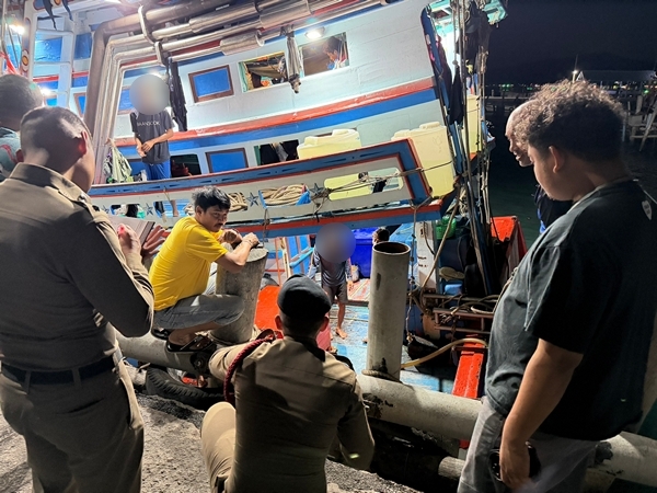 เมื่อเวลา 22.30 น. วันที่ 19 มี.ค.69 ร.ต.อ.มินทราทิพย์ ทองใส รองสารวัตรสอบสวน สภ.สัตหีบ รับแจ้งเหตุลูกเรือประมงใช้อาวุธมีดทำร้ายกันบนเรือประมงอวนล้อม ชื่อ “สิงห์กาญจนนาวารี 559” ส่งผลให้มีผู้ได้รับบาดเจ็บ เหตุเกิดกลางอ่าวไทย ห่างจากฝั่งแสมสาร มุ่งหน้าจังหวัดประจวบคีรีขันธ์ ประมาณ 25 ไมล์ทะเล ตั้งแต่ช่วงเวลา 16.30 น. โดยเรือกำลังลำเลียงผู้บาดเจ็บและผู้ก่อเหตุเข้าฝั่ง เจ้าหน้าที่จึงรุดไปตรวจสอบพร้อมชุดสืบสวน